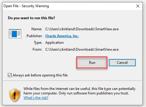 Step 4.    Click Run at the Open File – Security Warning pop-up.