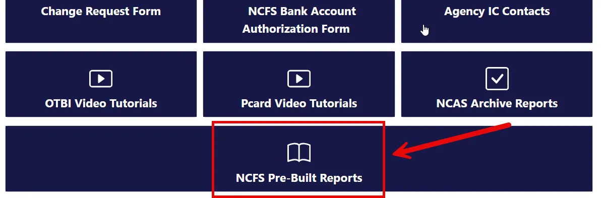 Step 2. At the bottom of the page, select the NCFS Pre-Built Reports tile.