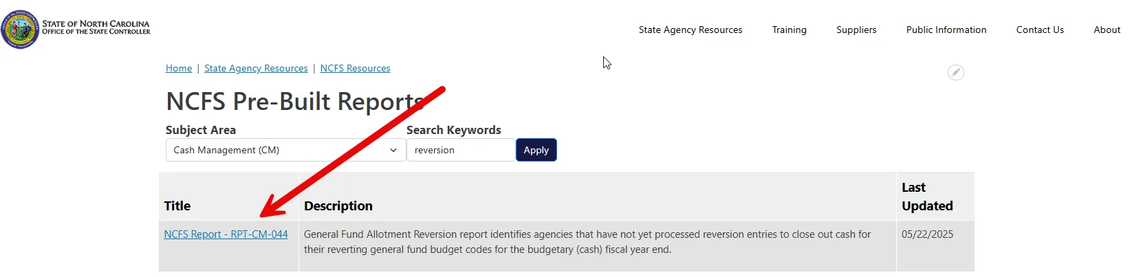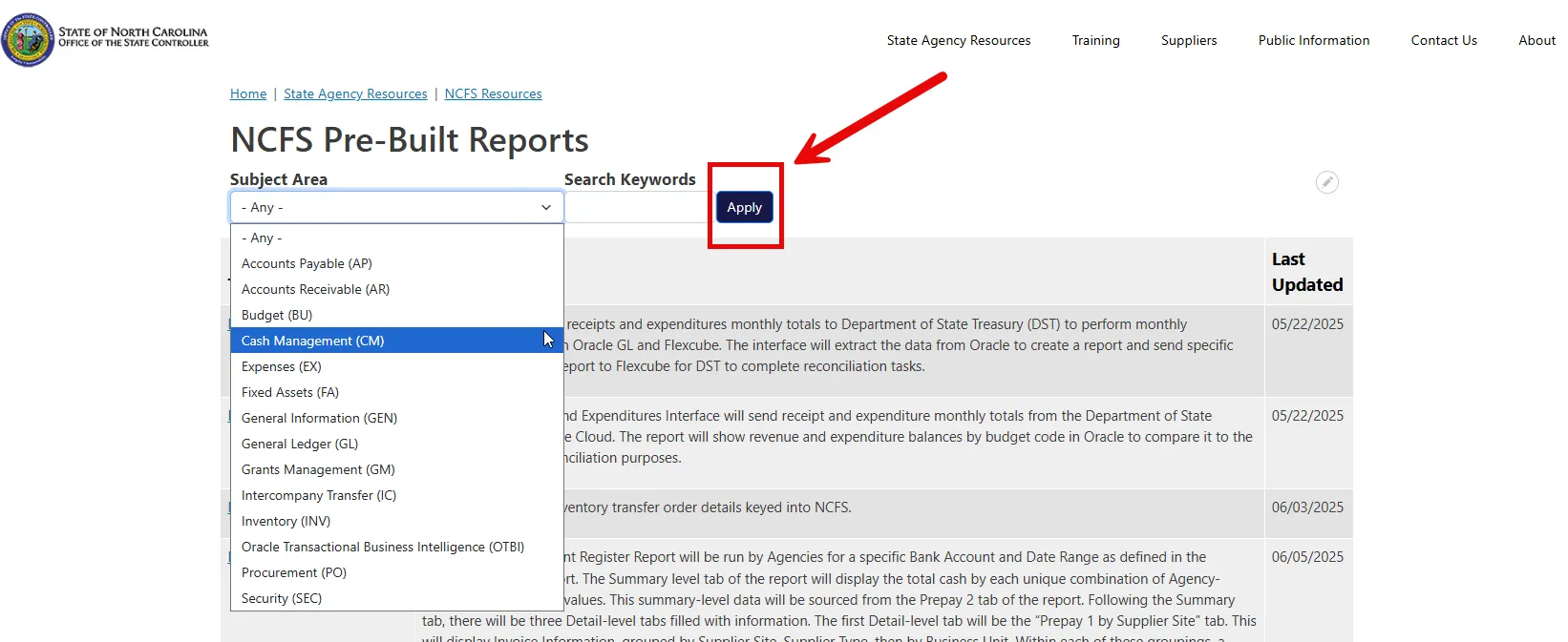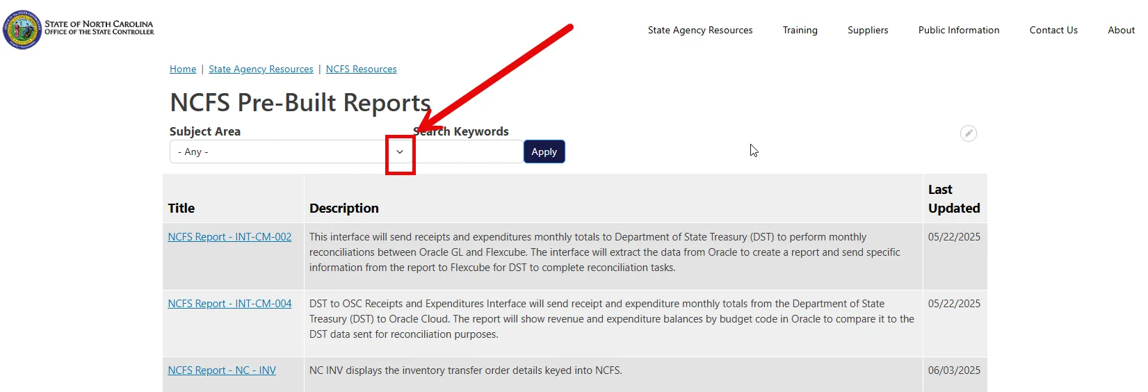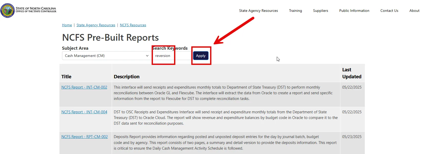 Users can search for Pre-Built Reports in NCFS by following the steps explained above.
