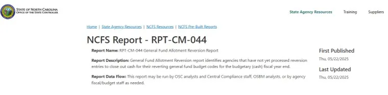 Step 7. The report details are now displayed for the NCFS Report – RPT-CM-044.
