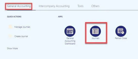 Step 2. On the Home page, click the General Accounting tab and select the Journals app.