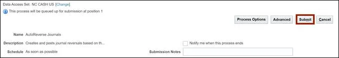- The newly created reversal journal needs to be submitted for approval. It will routed to the appropriate party, based on its journal Category.