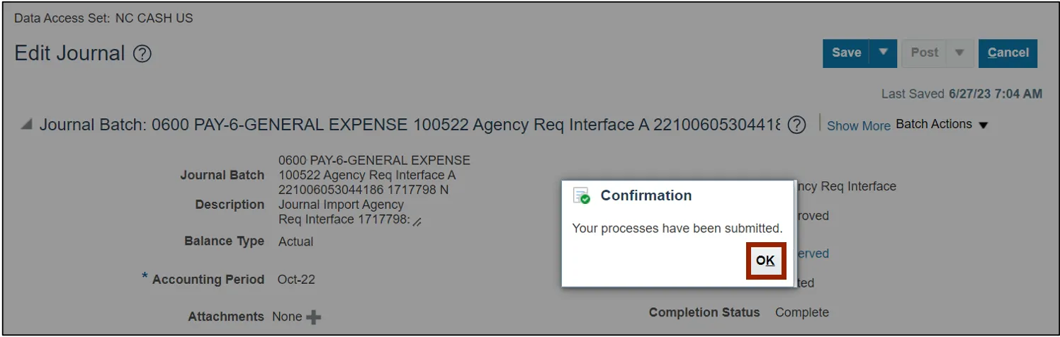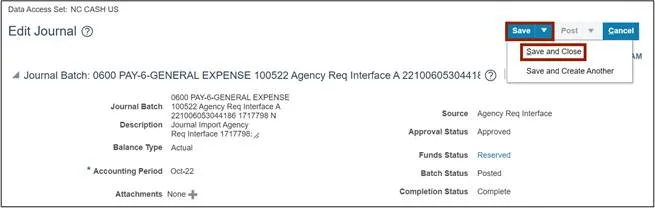 In this example, we entered 0600 PAY-6-GENERAL EXPENSE 100522 for Journal Batch and Oct-22 as the Accounting Period.