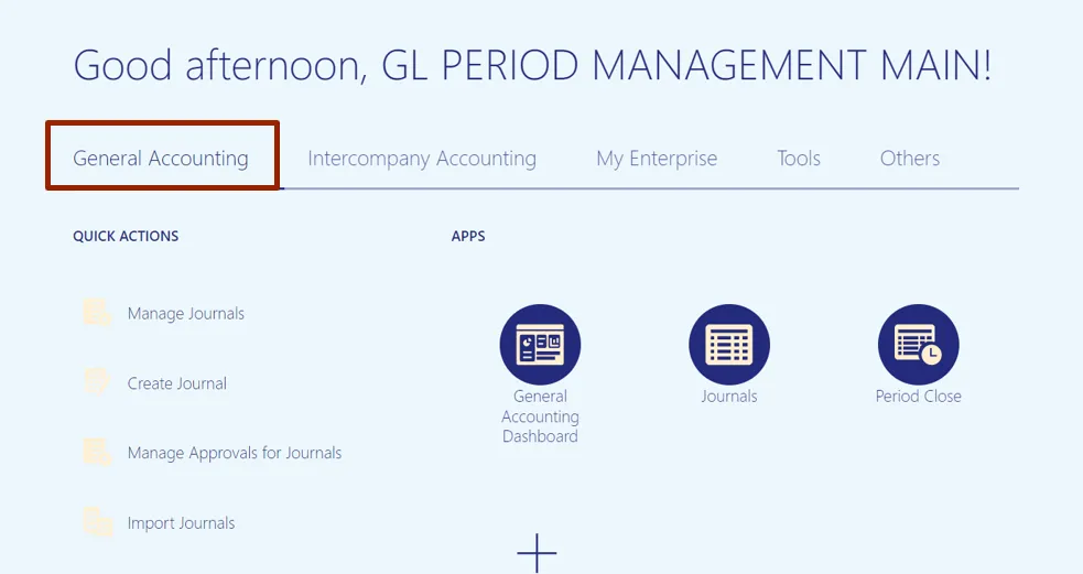 Step 2.    On the Home page, click the General Accounting tab.