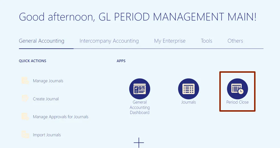Step 3.    Click the Period Close app.