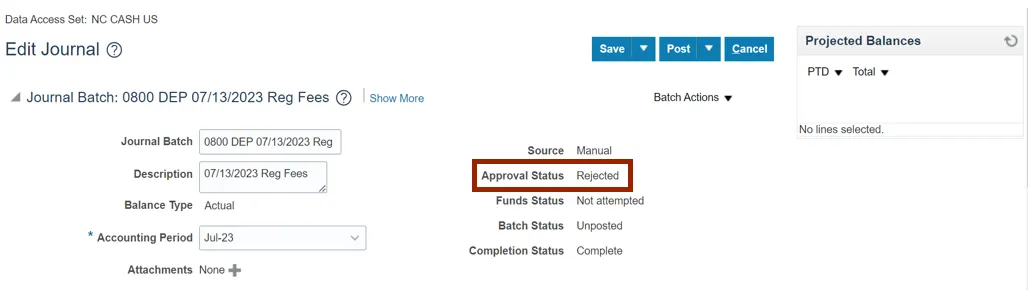 Step 6.    The Edit Journal page opens. Validate the Approval Status.