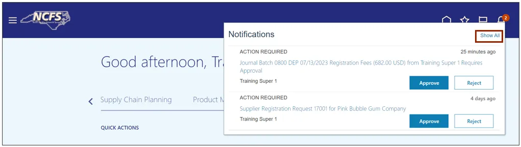 Approve Journals (Cash and Non-Cash) in NCFS using the above steps, will enable you to approve/reject a journal.