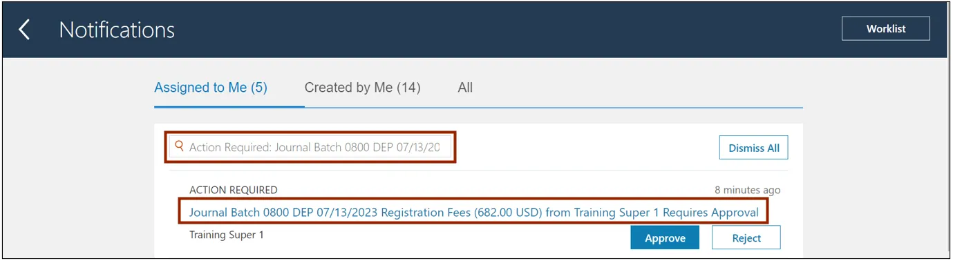 Step 4.    On the Notifications page, search for the required Journal. Click the Journal Batch link.