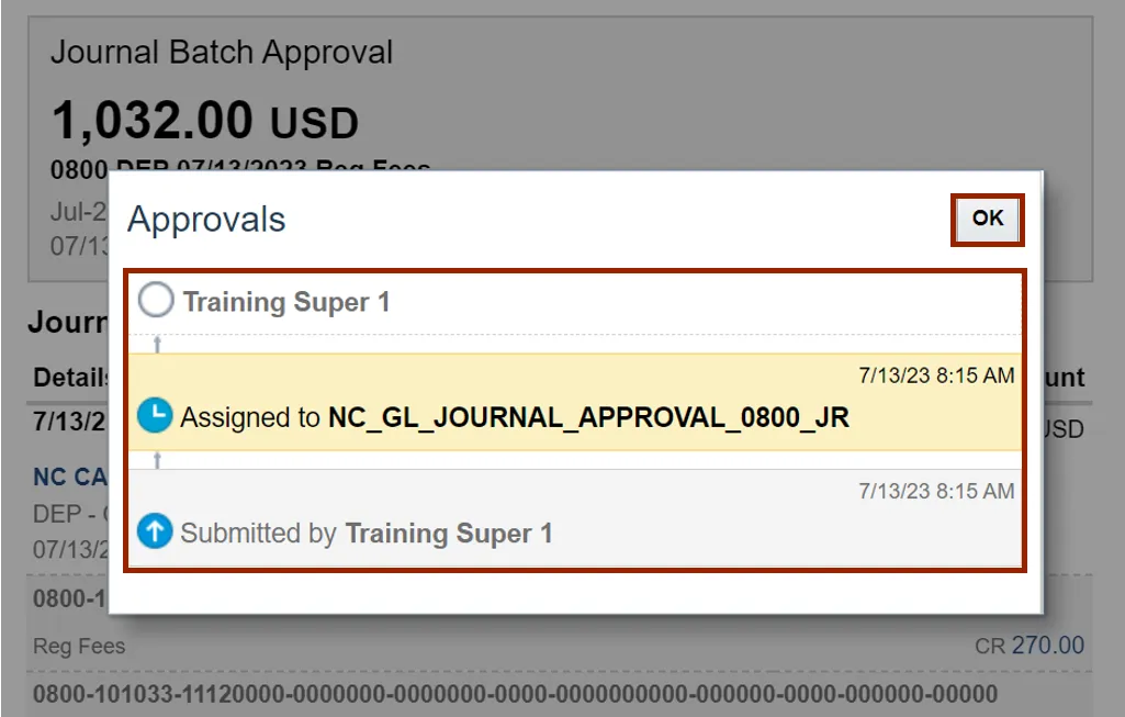 Step 10.    The Approvals pop-up appears. Review the details and click the OK button.