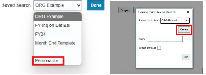 Step 11.    To Delete an existing saved search:
