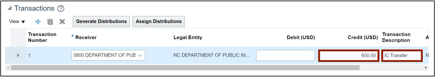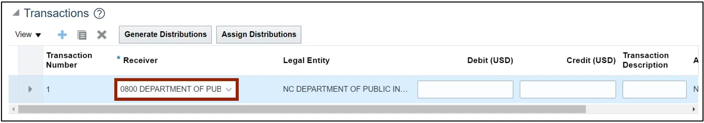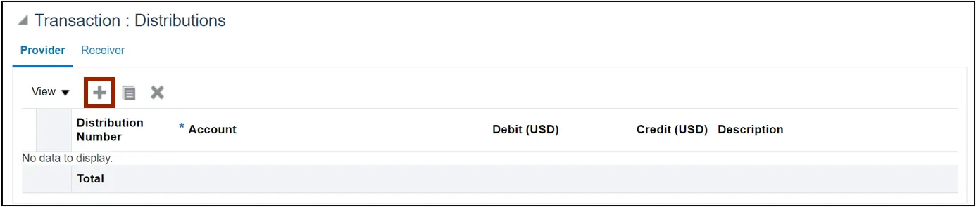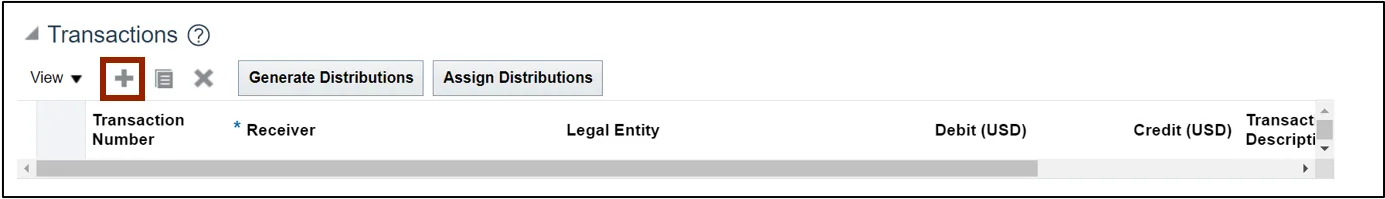 Step 11. Scroll down to find the Transactions: Distributions section and click the Add Row icon.