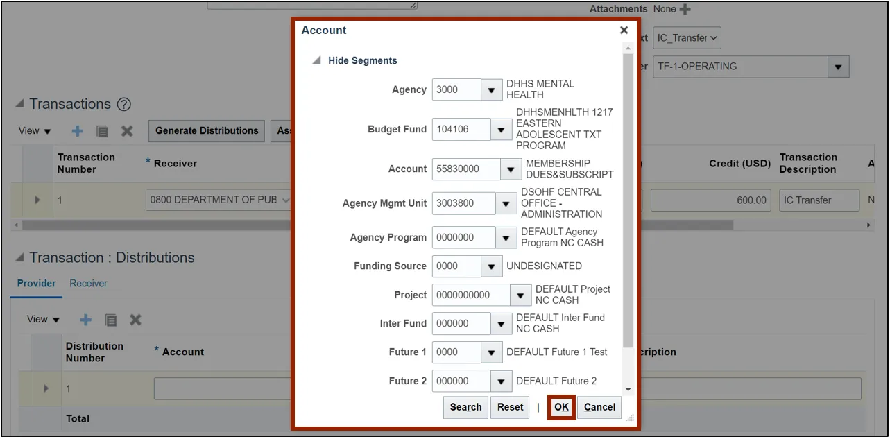 In this example, we choose the Provider as 3000 DHHS MENTAL HEALTH and Transaction Type Name as IC Transfer Out.