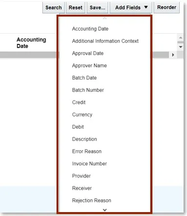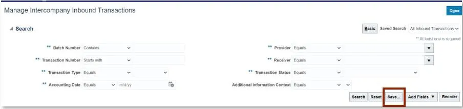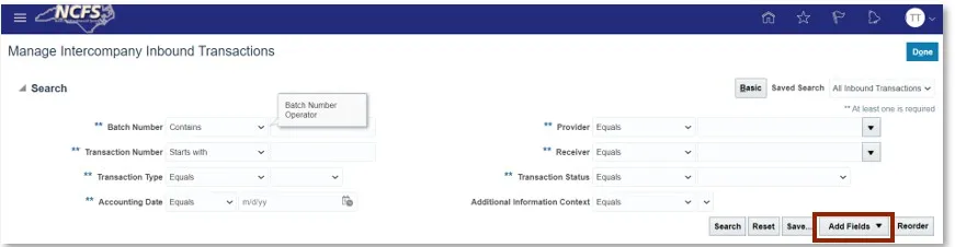 Step 1. On the Manage Intercompany Inbound Transactions screen, click the Add Fields dropdown arrow.