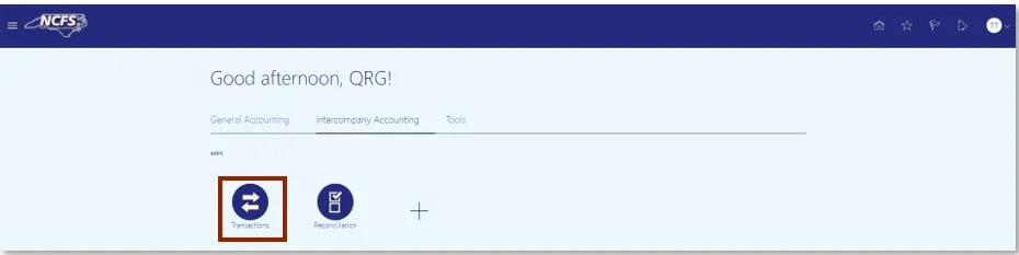 Step 1. Access the NCFS Homepage and click the Intercompany Accounting icon.