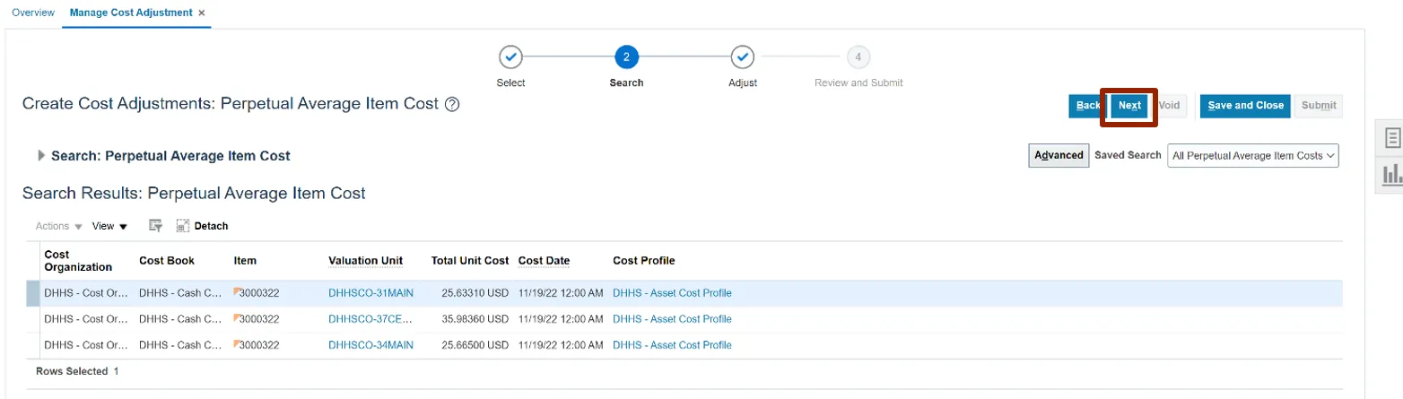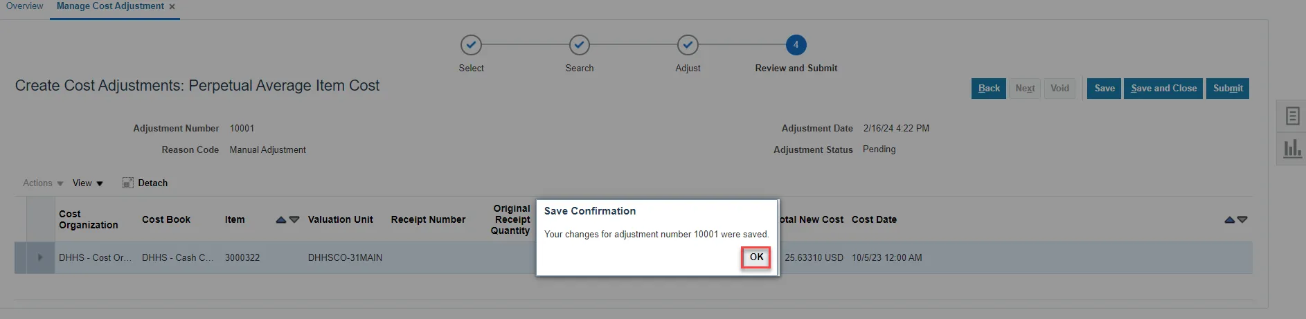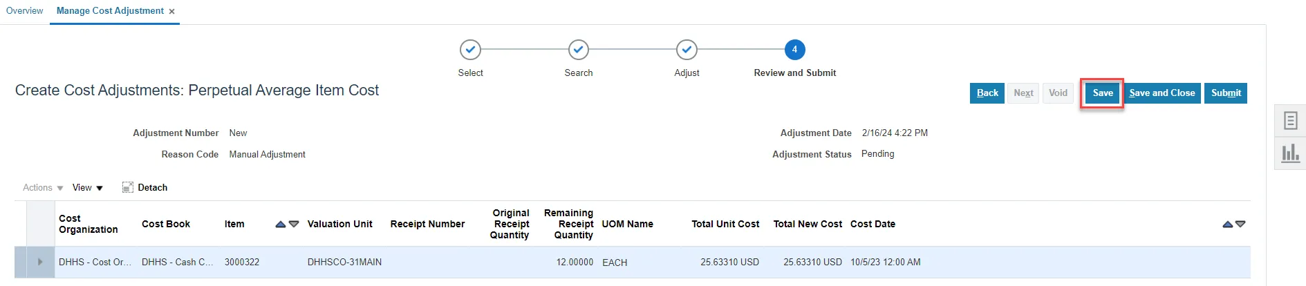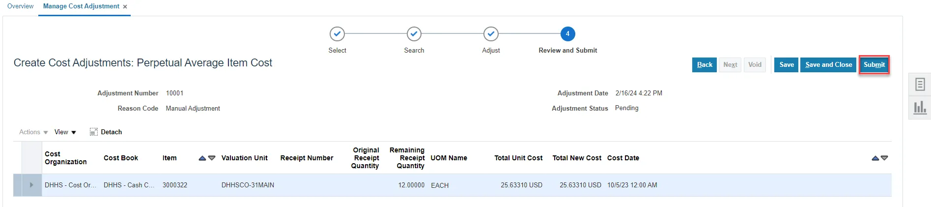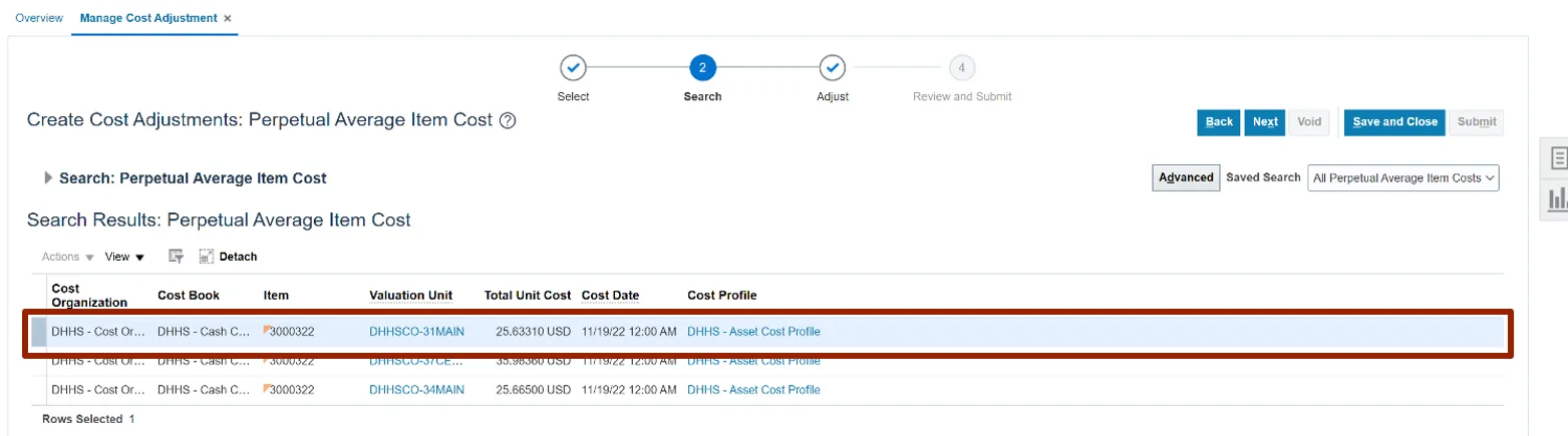 Note: Cost Adjustment must be repeated for all the cost books i.e., Cash Book, Accrual Book, and Modified Accrual Book so that cost remains in sync across all three cost books. The New Item cost will be reflected in the system once the costing processes runs through Batch Schedule, typically the next day.