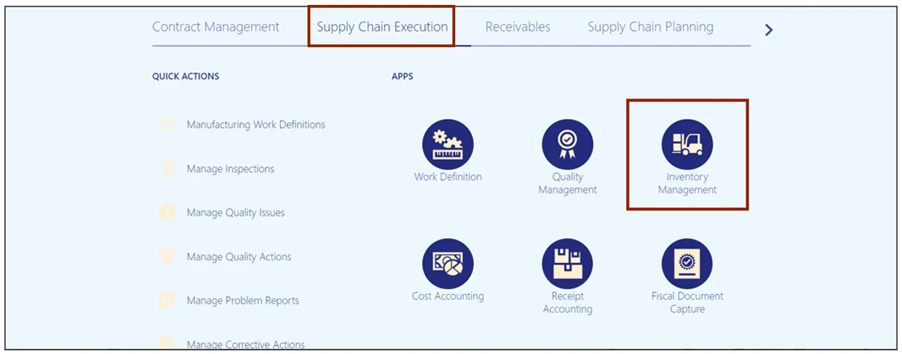 Step 2.    On the Home page, under the Supply Execution tab, click the Inventory Management app.