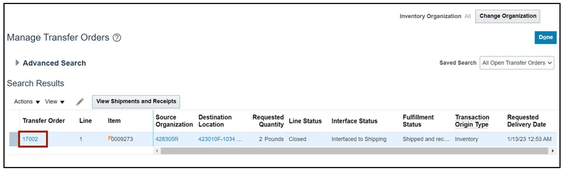 INV-11 Create, Inquire, and Edit Transfer Orders from Inventory