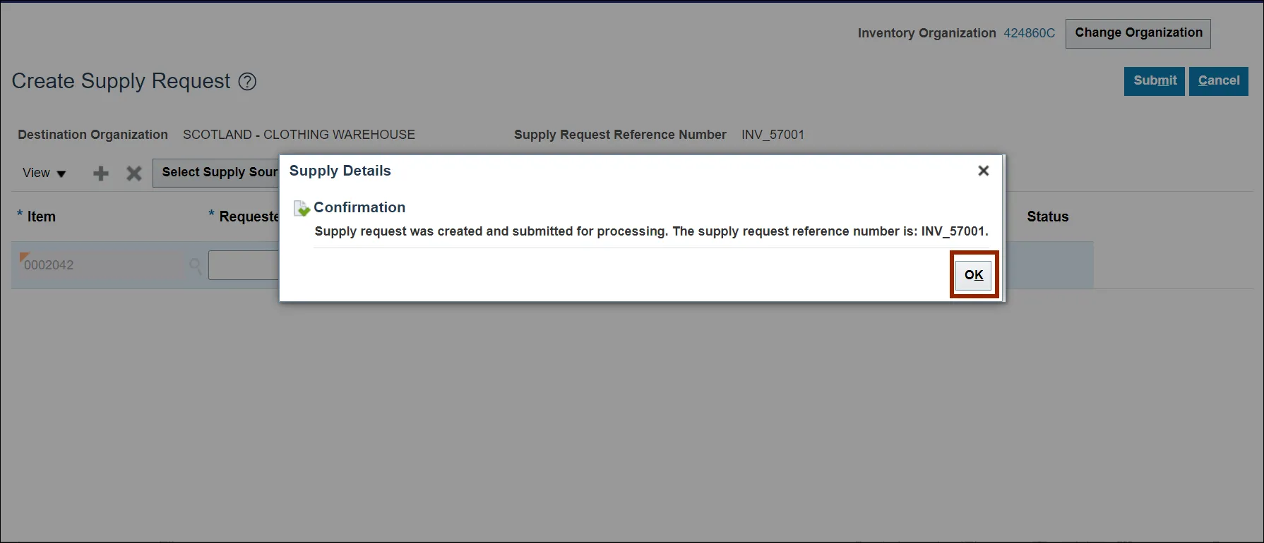 Step 10.    Click the OK button after the Supply Details pop-up appears.