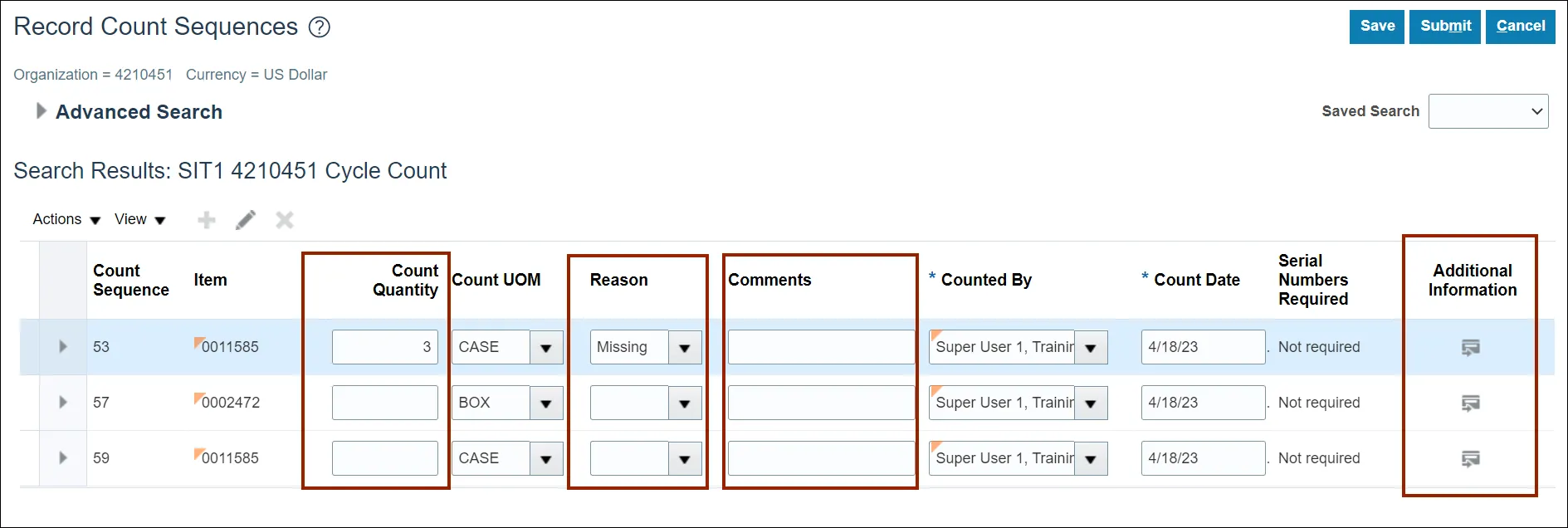Step 12. Enter the Count Quantity and any required fields.
