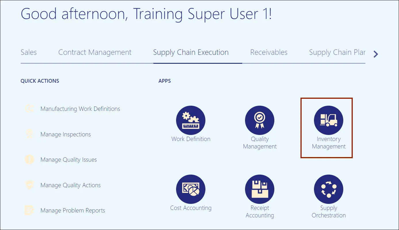 Step 2. On the Home page, click the Supply Chain Execution tab.