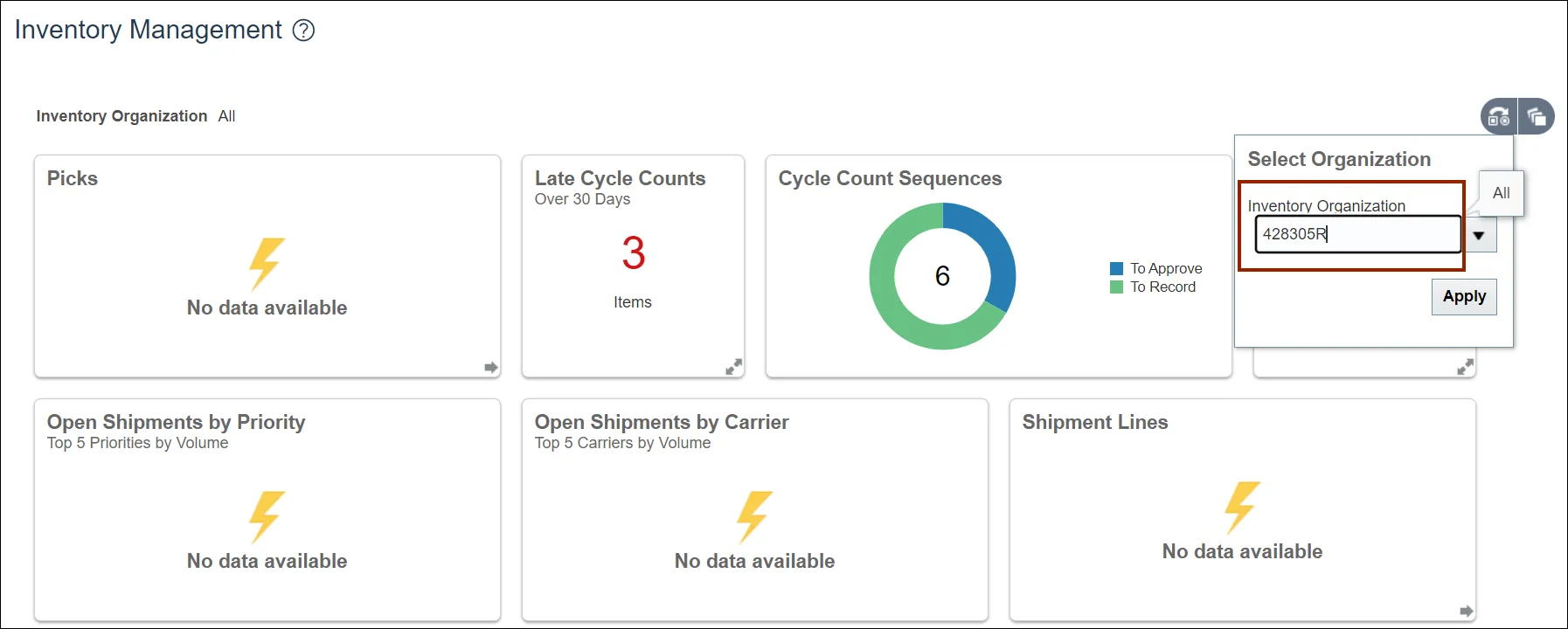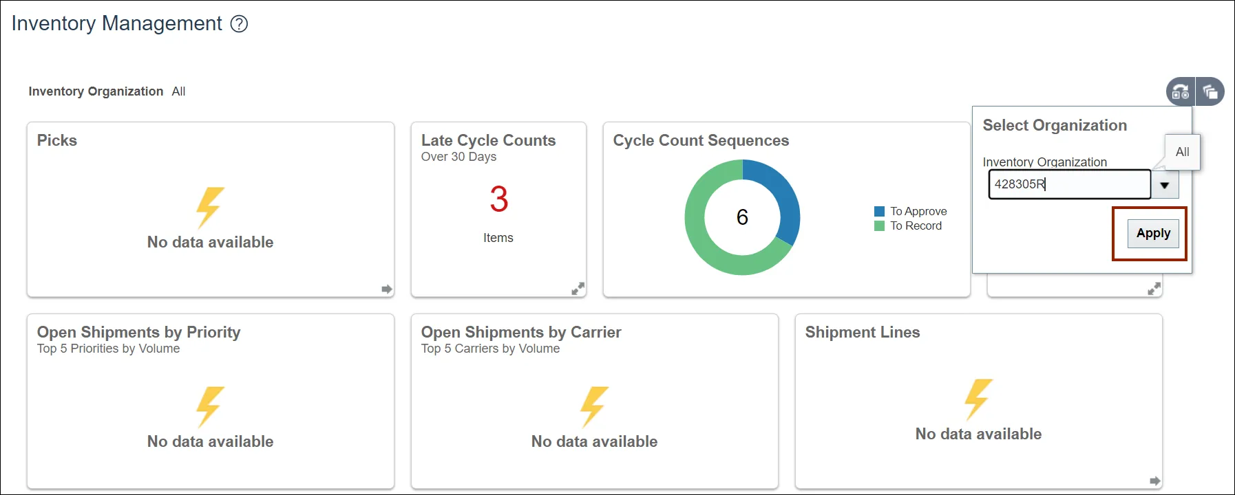 Step 5. Enter the Inventory Organization.