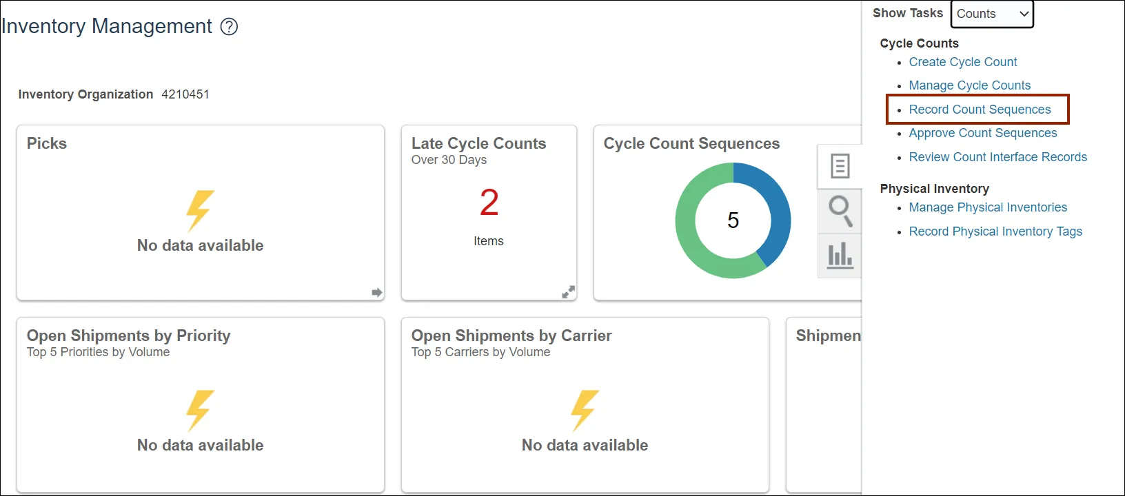 Step 9. From the Cycle Counts area, click Record Count Sequences.