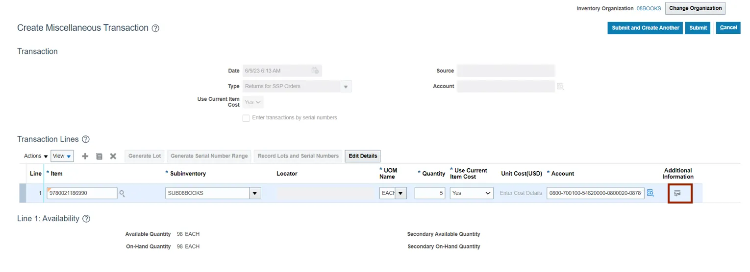 Note: Reference Consumption Requisition will be auto populated only for Returns for SSP Orders transaction type