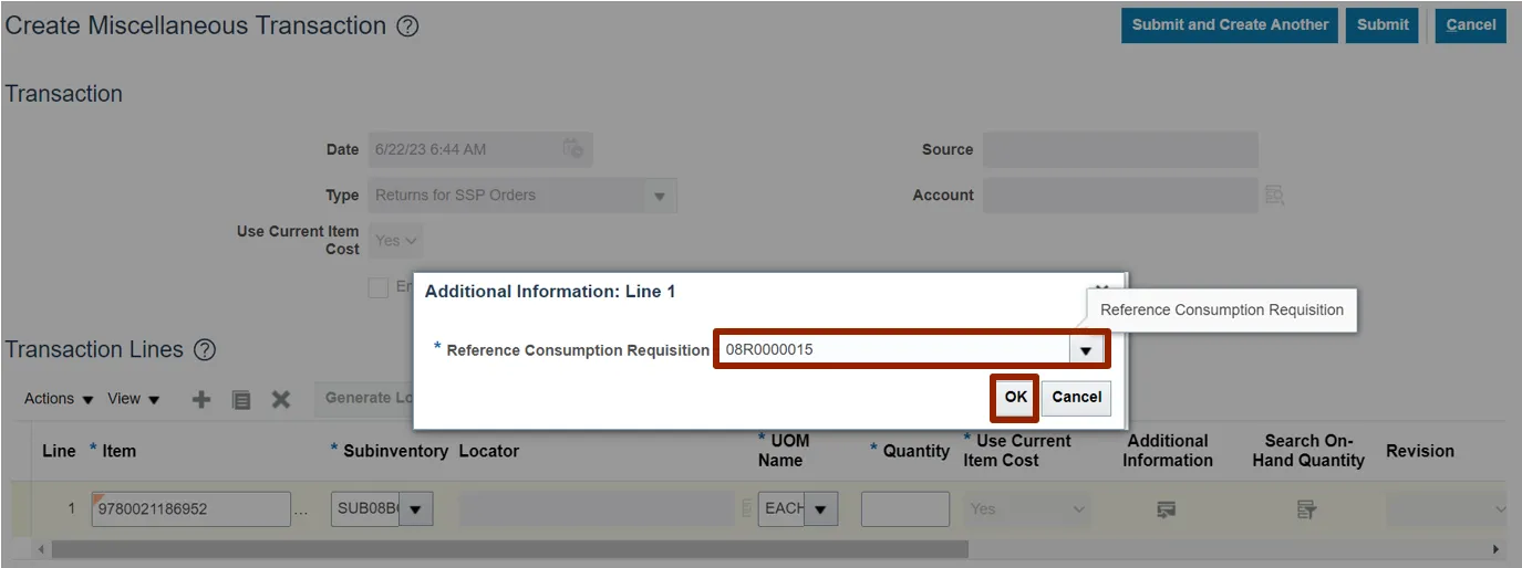 Step 6. Select the Reference Consumption Requisition number and click the OK button.