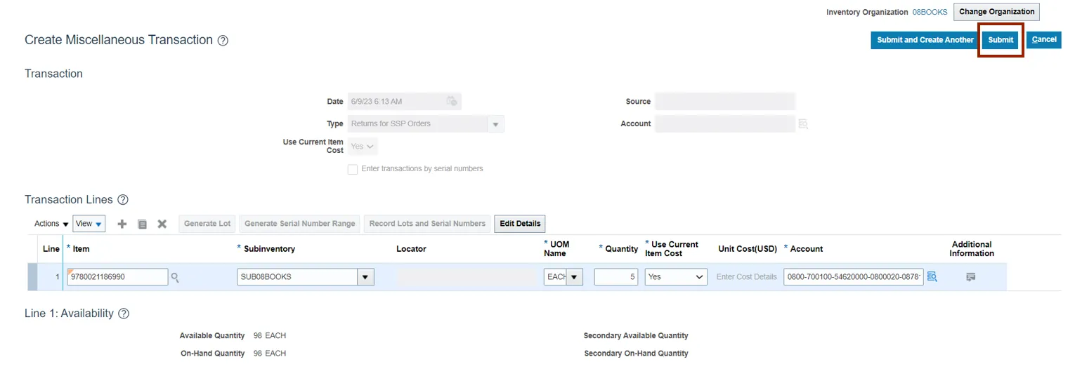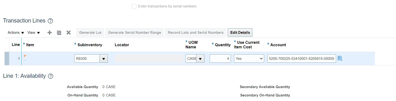 Step 8. Under the Transaction Lines section, enter the Item details.