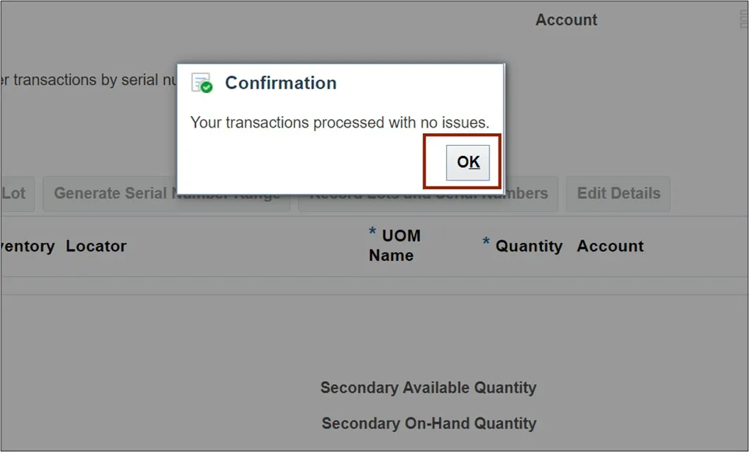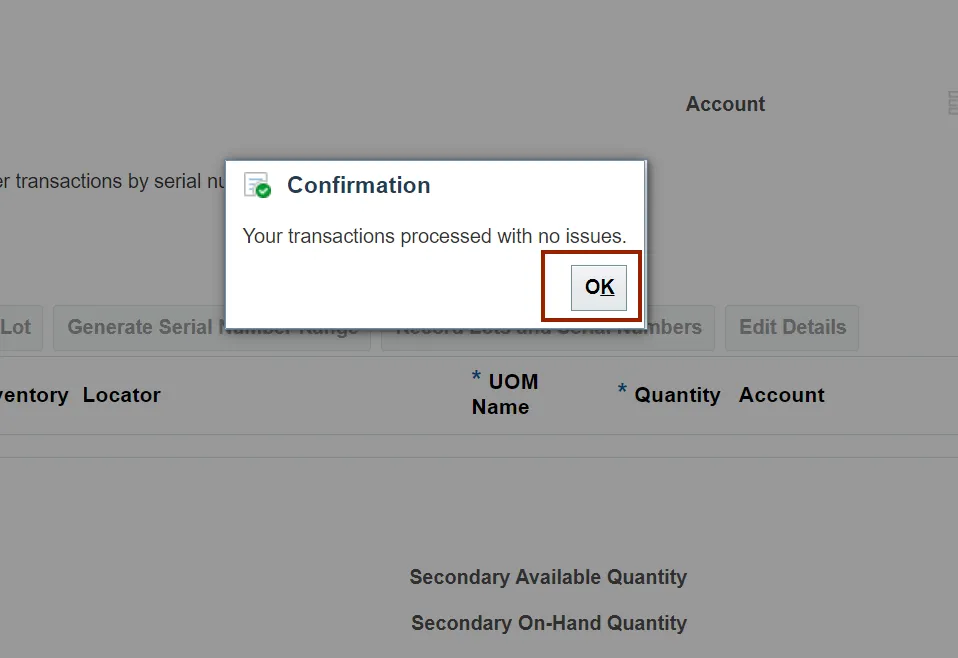 Step 8. A Confirmation pop-up appears. Click the OK button.