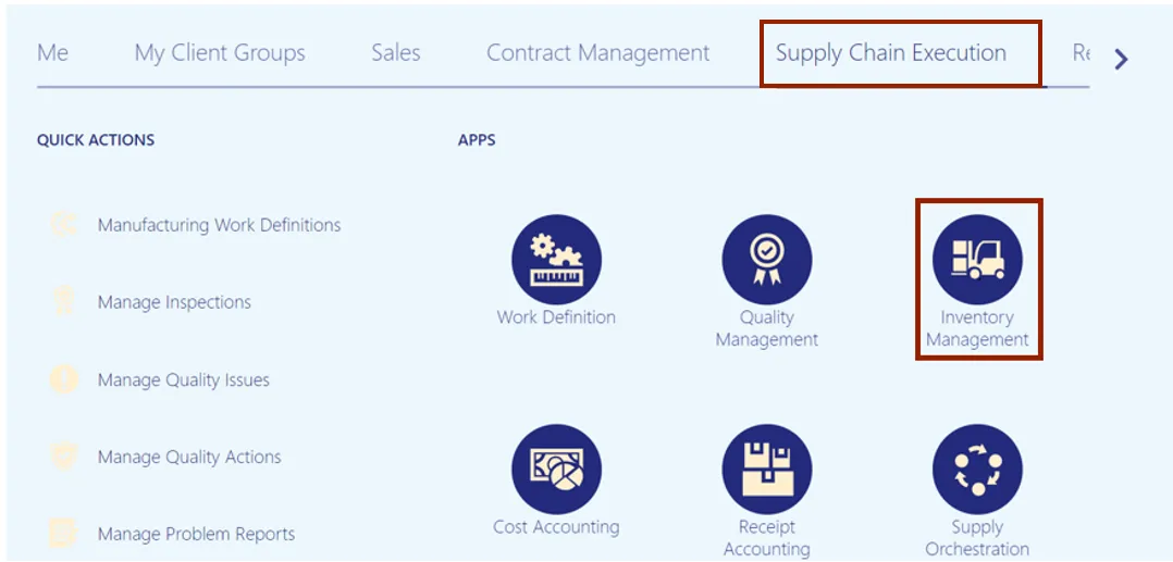 Step 2. On the Home page, click the Supply Chain Management tab and click the Inventory Management app.