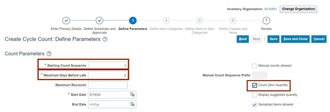 Create Counts using the steps above, to define cycle count and generate count sequences.