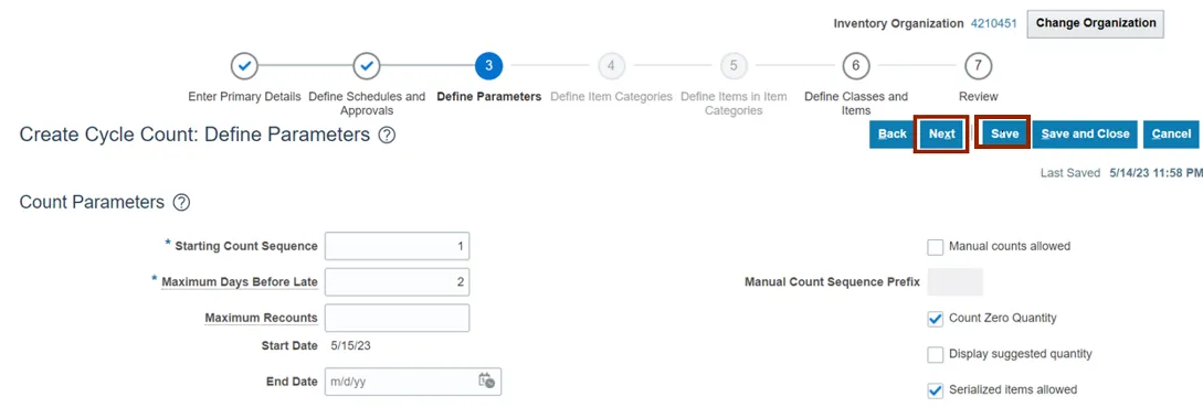 To define cycle count in NCFS, please follow the steps below. There are 15 steps to complete this process.