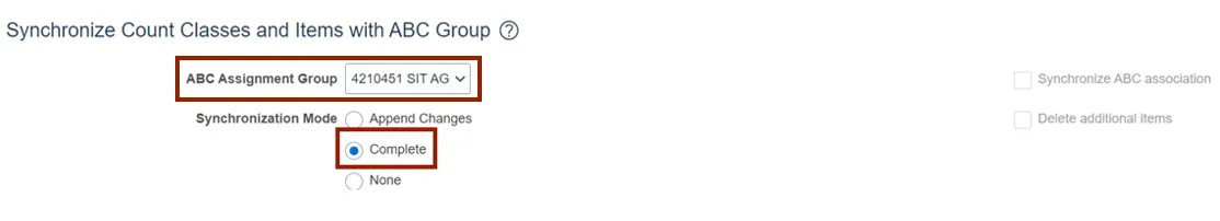Step 7. Scroll down to the Synchronize Count Classes and Items with ABC Group section, then select the ABC Assignment Group.
