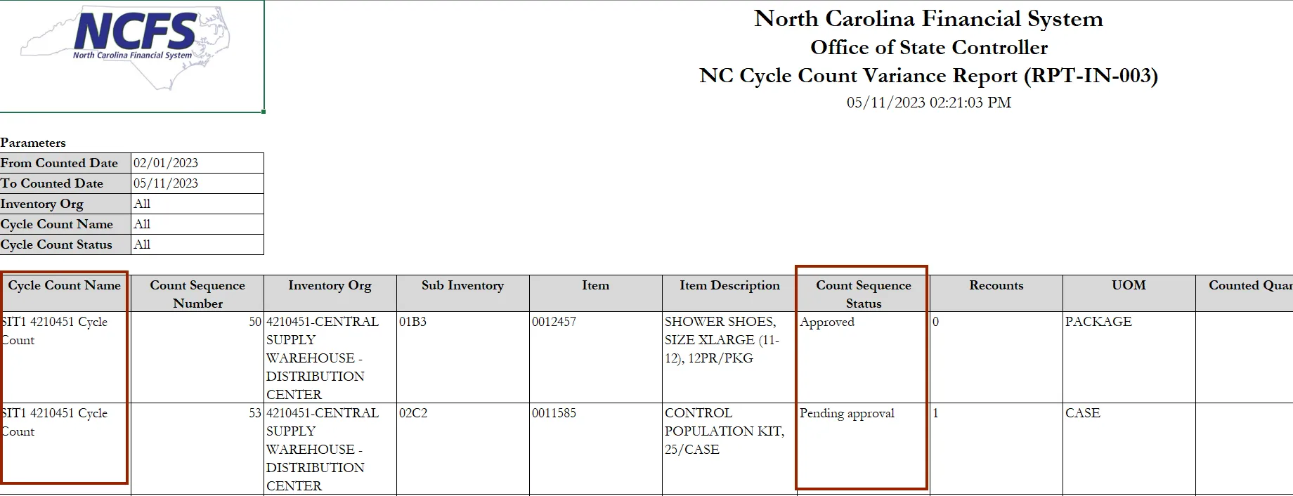 View the NC cycle count variance report using the steps above in NCFS.