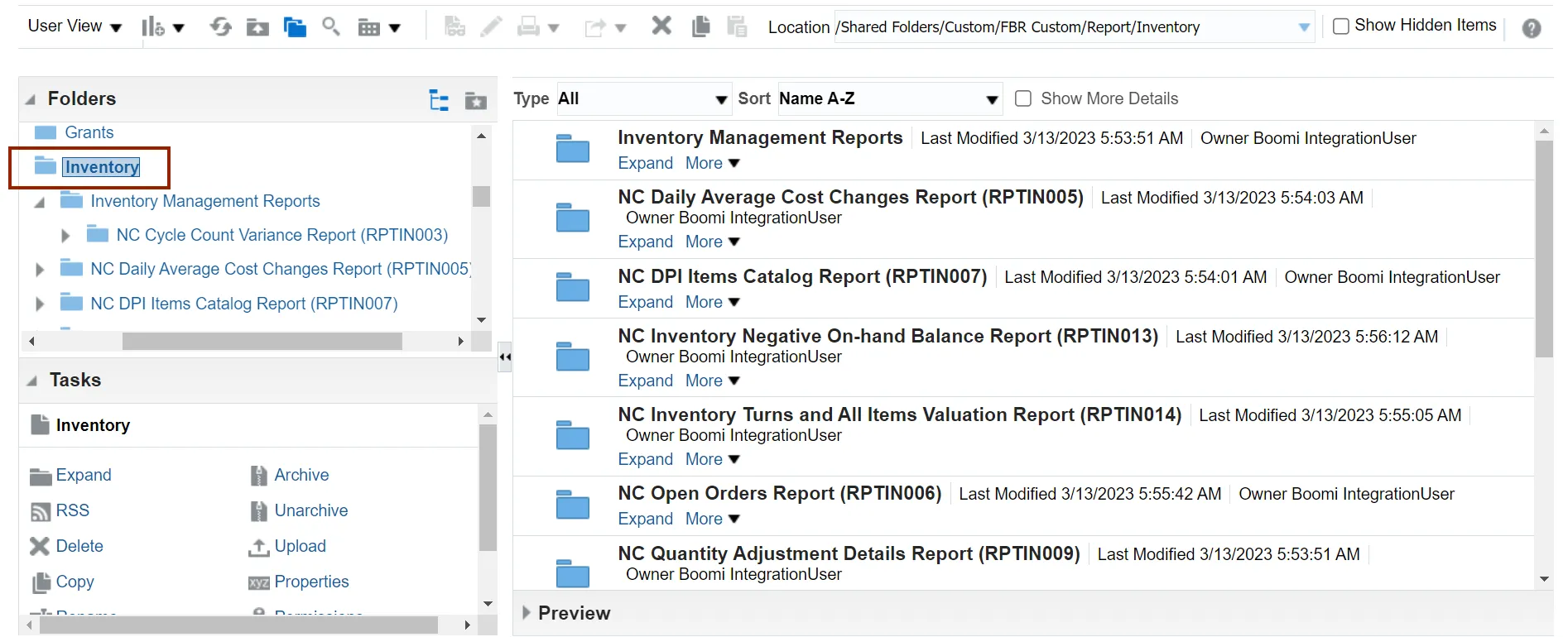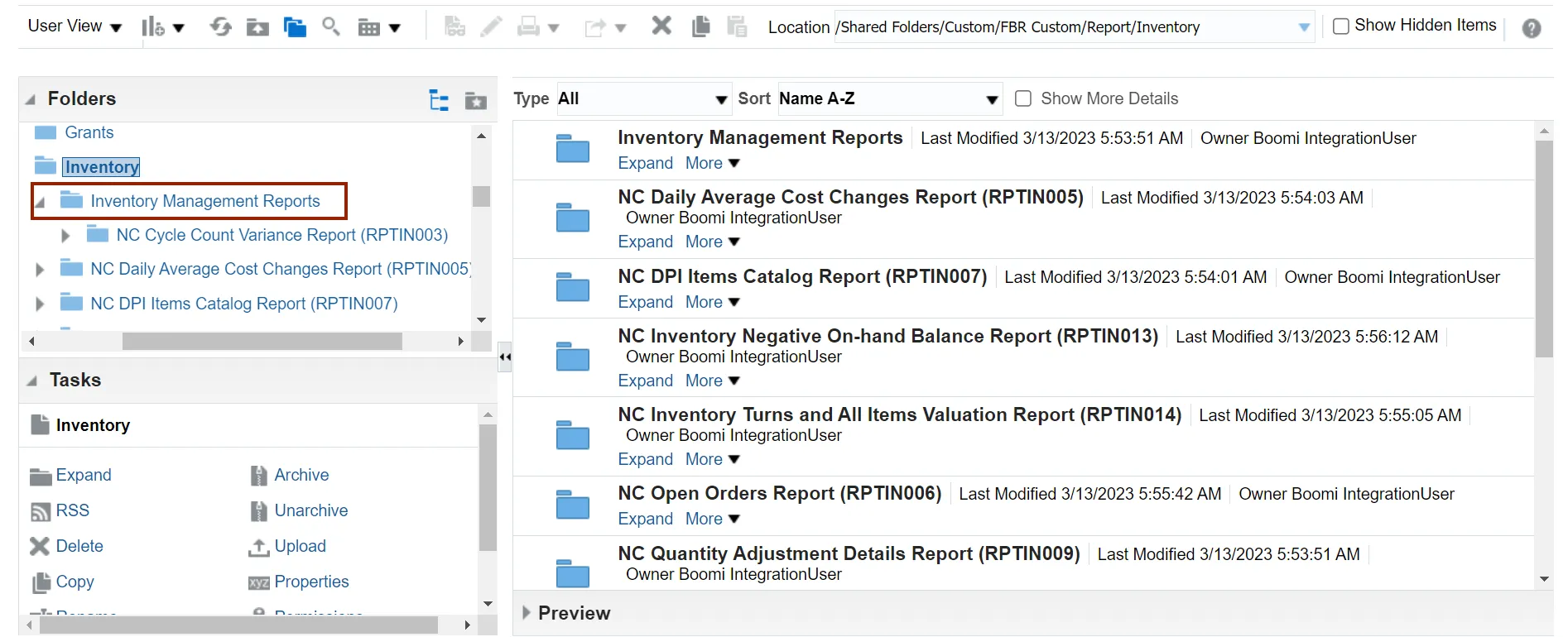Step 9. Click the Inventory Management Reports folder.