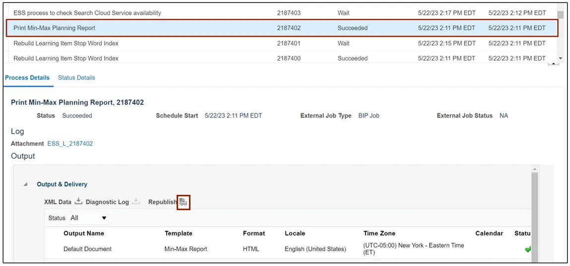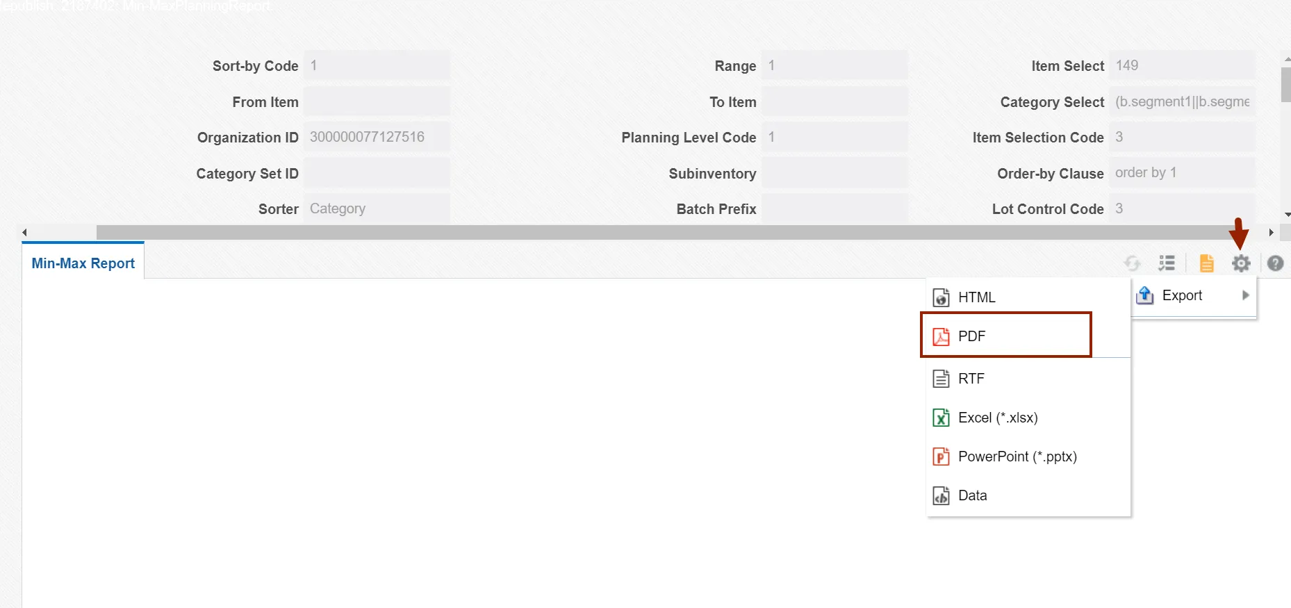 In this example, we choose Print Min-Max Planning Report. Click the Search button.
