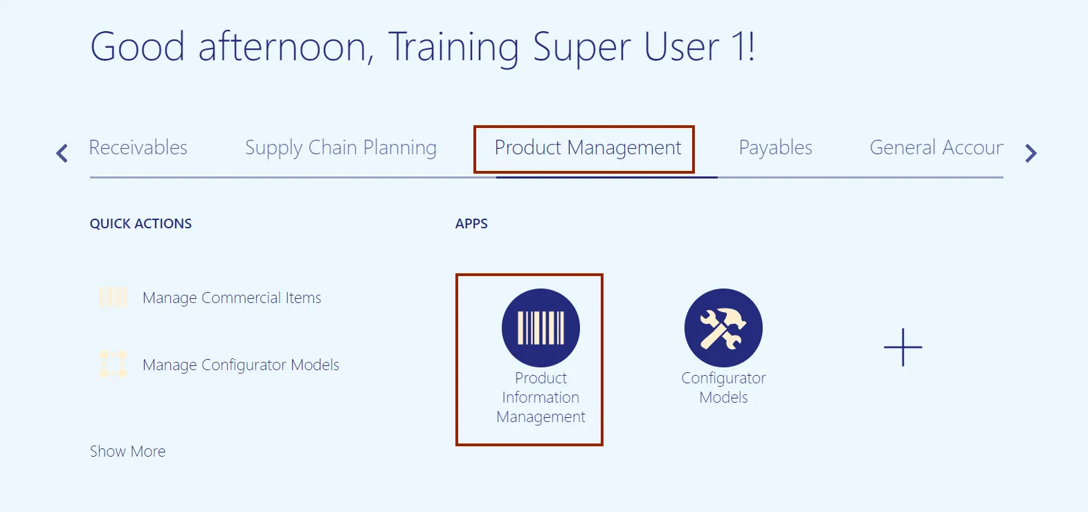 Step 2.    Click the Product Management tab and click the Product Information Management app.