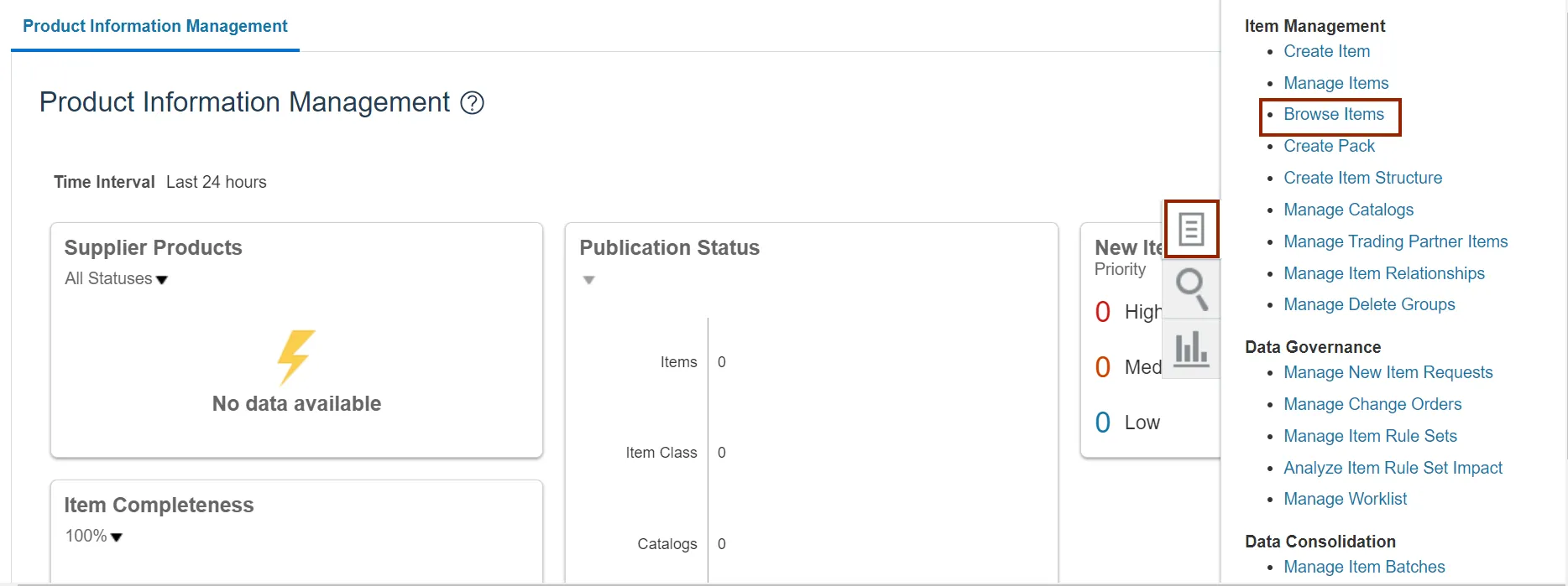 Step 3.    Click the Tasks icon. Under the Product Information Management section. Click the Browse Items link.