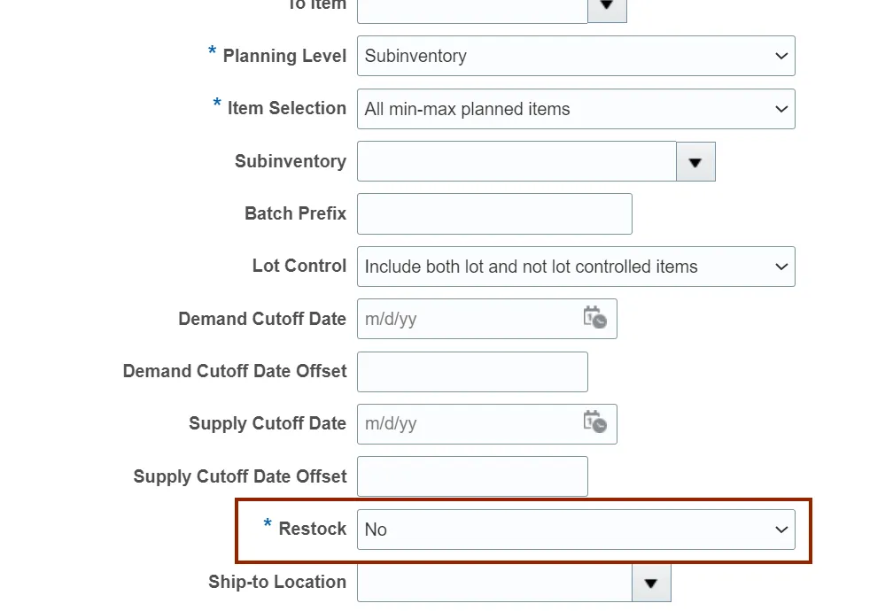 Step 9.    Scroll down to view the Restock field. Ensure that the field shows No.