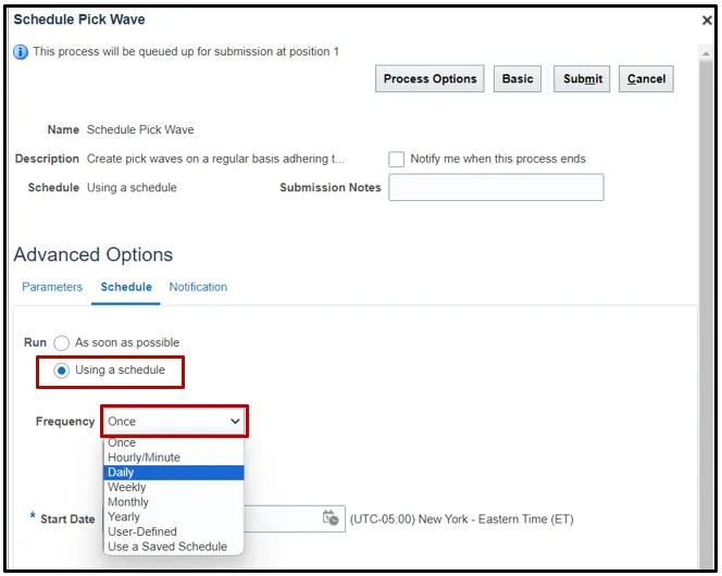 To schedule a pick wave in NCFS, please follow the steps below. There are 11 steps to complete this process.