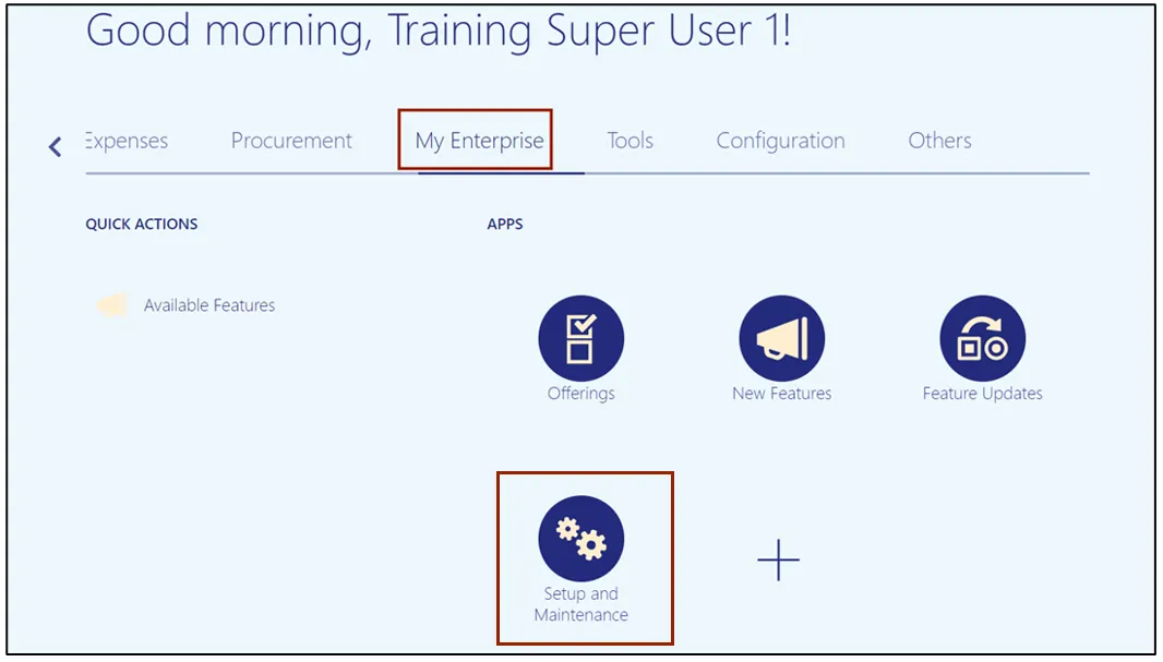 Step 2. On the Home page, under the My Enterprise tab, click the Setup and Maintenance app.