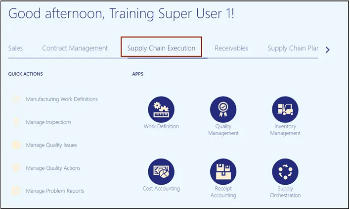 Step 1. On the Home page, under the Supply Chain Execution tab, click the Inventory Management app.