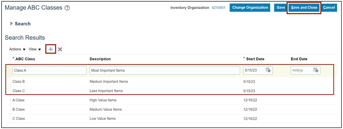 Step 6. On the Manage ABC Classes page, click the Add icon and enter the ABC Class and Description. Click the Save and Close button.