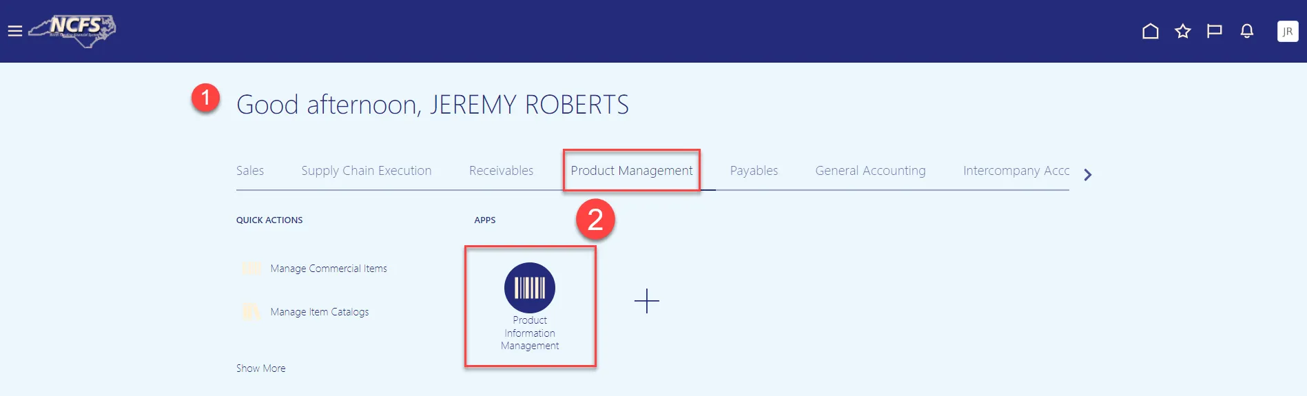 Step 2. On the Home page, under the Product Management tab, click the Product Information Management app.