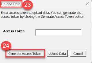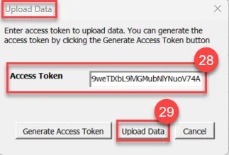 Step 28. Go back to the Excel spreadsheet Upload Data Window and click in the Access Token field and click Ctrl+P to paste the generated access token.