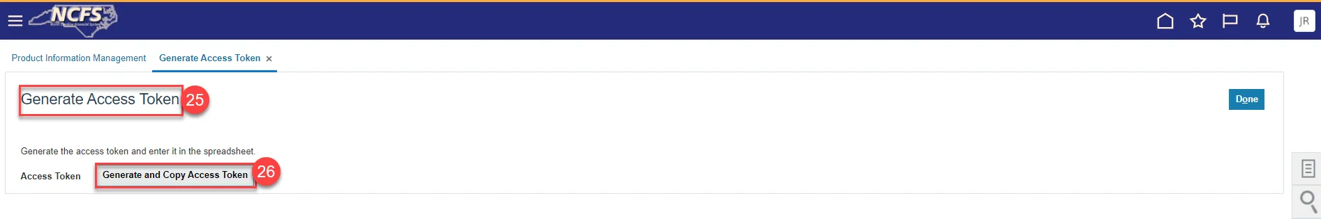 Step 25. This will navigate you to NCFS Generate Access Token screen.