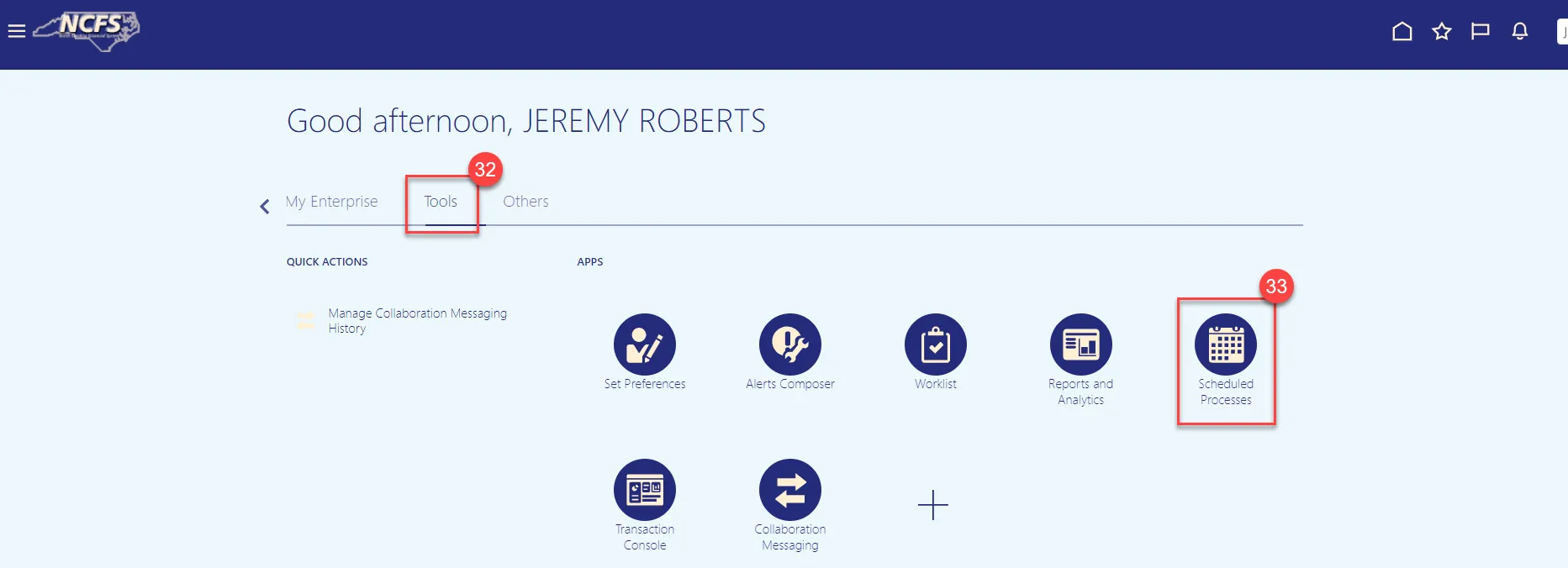 Step 32. Go to the NCFS Home screen and select Tools.