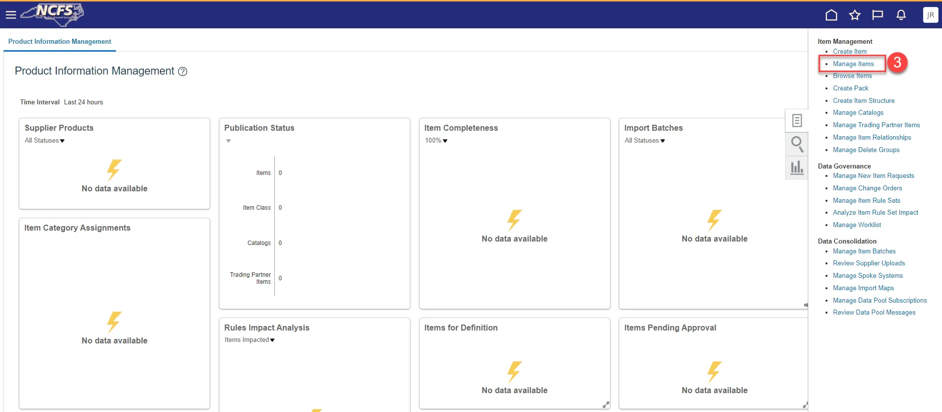 Step 41. Navigate back to Product Information Management and Manage Items.