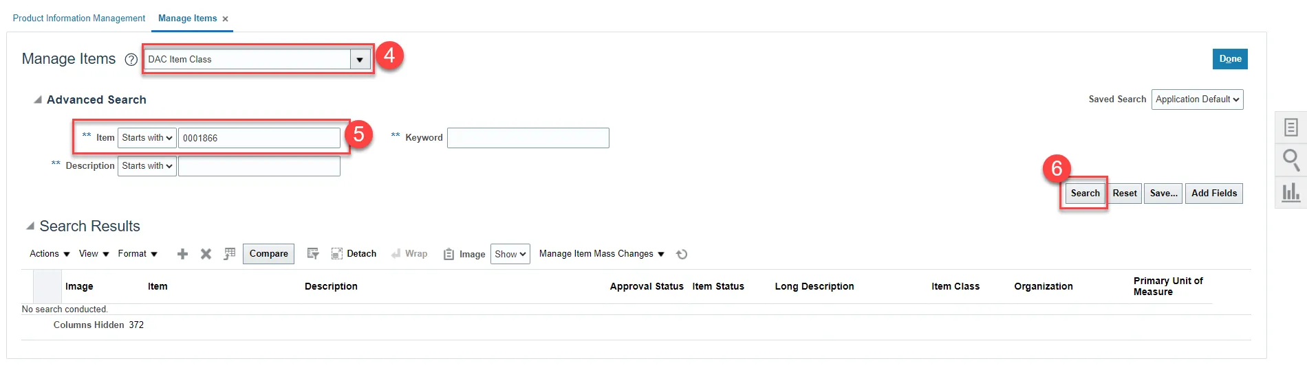 Step 44. Click the Search button to display the item information.